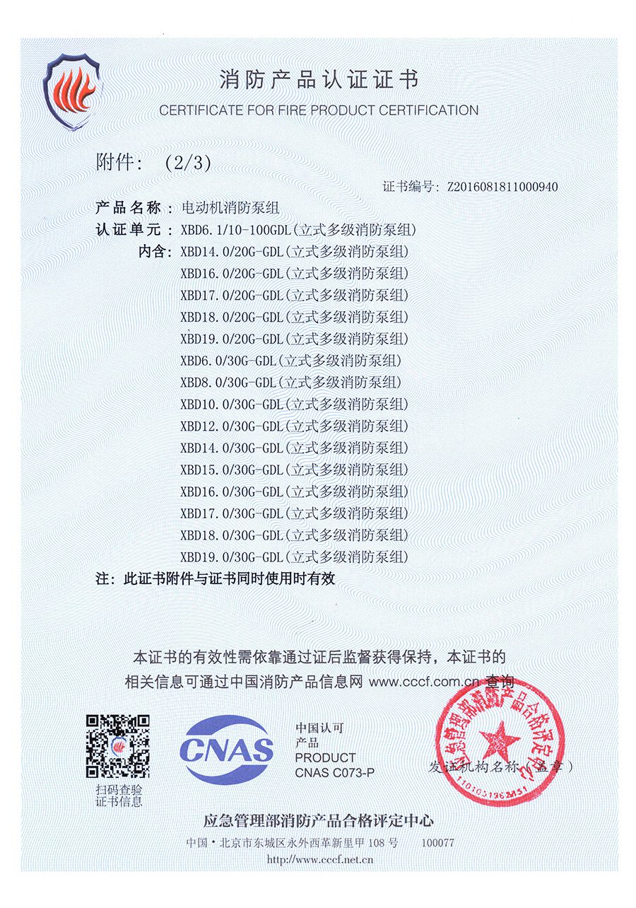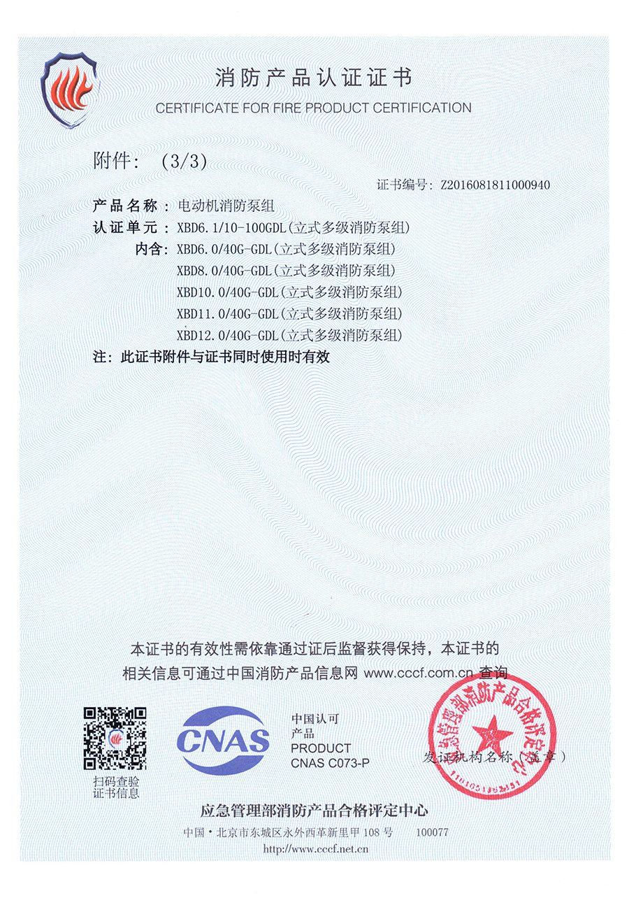 立式多級(jí)GDL-消防產(chǎn)品認(rèn)證證書(shū)