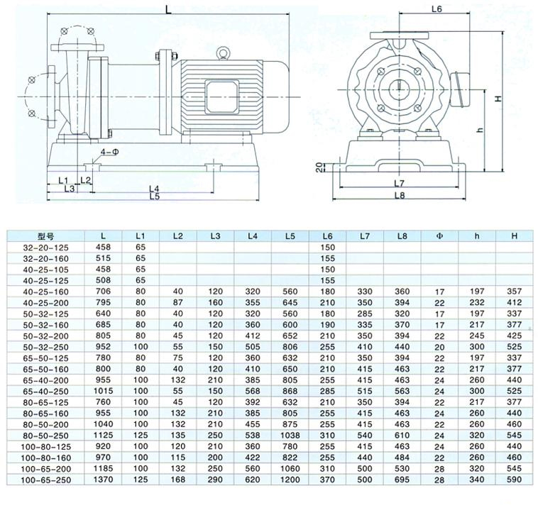 上海二泵CQB磁力驅(qū)動(dòng)離心泵(簡(jiǎn)稱磁力泵),通常由電動(dòng)機(jī),磁力偶合器和耐腐蝕離心泵組成。其主要特點(diǎn)是利用磁力偶合器傳遞動(dòng)力,完全無(wú)泄漏,當(dāng)電動(dòng)機(jī)帶動(dòng)磁力偶合器的外磁鋼旋轉(zhuǎn)時(shí),磁力線穿過(guò)問(wèn)隙和隔離套,作用于內(nèi)磁鋼上,使泵轉(zhuǎn)子與電動(dòng)機(jī)同步旋轉(zhuǎn),無(wú)機(jī)械接觸地傳遞扭矩。在泵軸的動(dòng)力輸入端,由于液體被封閉在靜止的隔離套內(nèi),沒(méi)有動(dòng)密封因而完全無(wú)泄漏。 CQB系列磁力泵是磁力泵全國(guó)聯(lián)合設(shè)計(jì)組開(kāi)發(fā)的新型完全無(wú)泄漏耐腐蝕泵,其技術(shù)經(jīng)濟(jì)指標(biāo)與國(guó)外同類產(chǎn)品八十年代末的水平相當(dāng)。 CQB系列磁力泵型式及基本參數(shù)符合JB/T 7742—1995《小型磁力驅(qū)動(dòng)離心泵型式與基本參數(shù)》標(biāo)準(zhǔn)和《小型磁力驅(qū)動(dòng)離心泵三個(gè)標(biāo)準(zhǔn)的補(bǔ)充規(guī)定》。