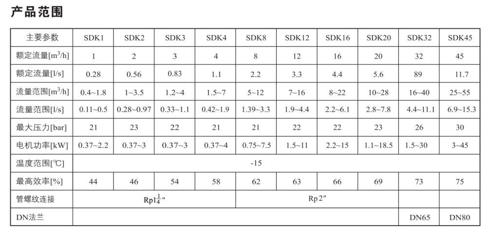 SDK/SDKT為配用標(biāo)準(zhǔn)電機(jī)的非自吸立式多級離心泵,電機(jī)軸和泵軸用聯(lián)軸器直接聯(lián)接的結(jié)構(gòu)。為滿