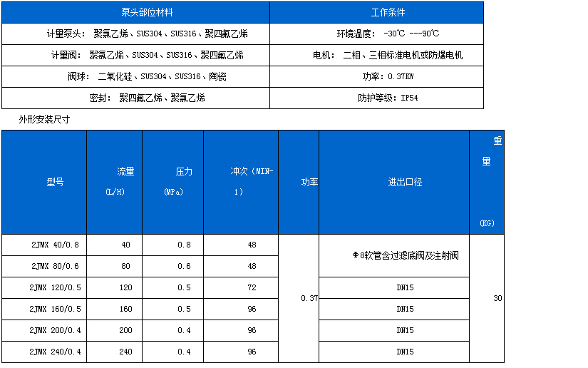 3、接觸介質(zhì)泵頭為PVC、可選PTFE、及不銹鋼材質(zhì)。
